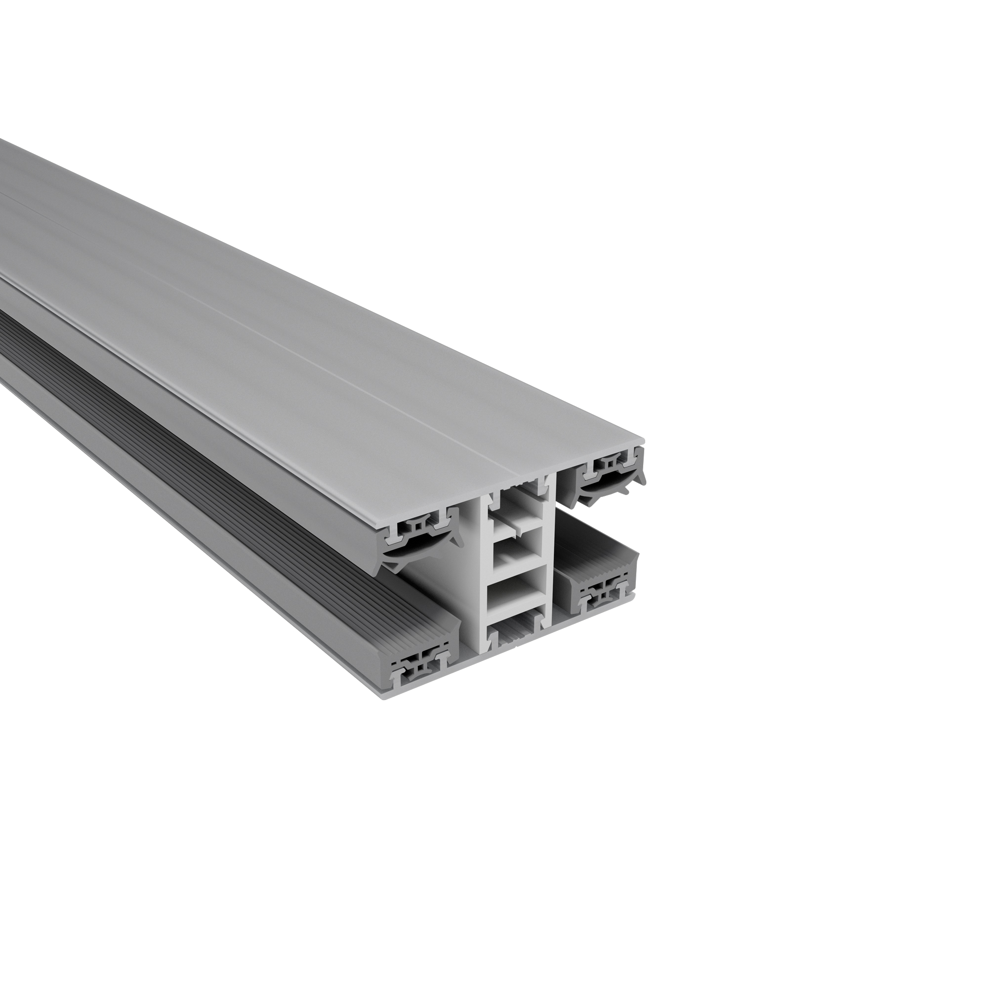 Das Profil ist für Platten mit 16 mm Stärke konzipiert und kombiniert eine thermische Trennung in vertikaler Richtung mit klassischer Auflage auf der Unterkonstruktion. Im Vergleich zur Thermo/Thermo-Variante bietet es keine zusätzliche Belüftung von unten – ideal für kosteneffiziente Überdachungen mit normaler Belastung.
